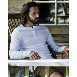 ·250 g/m² ·100% Cotton, ring-spun and combed ·Heather Grey: 85% Cotton, 15% Viscose ·Enzyme and silicone wash for a softer and smoother surface ·High quality 1x1 rib ·Self fabric neckrib ·Button placket ·Slim fit.