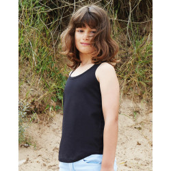 ·150 g/m² ·100% Cotton organic, ring-spun and combed ·Single Jersey ·Drop armhole ·Narrow binding at neck and armholes ·High back ·Fashion fit ·Tear-off size label at back neck, perfect for re-branding.
