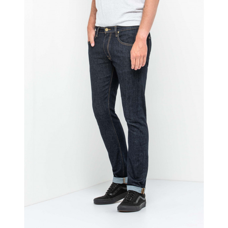 Le jean Slim Tapered ultra-moderne de Lee� : la coupe slim fusel�e par excellence : taille ajust�e, slim aux hanches et aux cuisses et resserr� du genou � la cheville. Coloris True Authentic : Deep Blue High Stretch Deluxe Denim 12 3/4 Oz. 93% coton / 5% polyester / 2% �lasthanne. Un denim bleu fonc� trait� � la r�sine et comportant des zones d´usure intenses ainsi que des accrocs r�alis�s � la main, pour un style hautement percutant et affirm�. Boutons et rivets dor�s. Ecusson Lee� de couleur ch�taigne au dos.